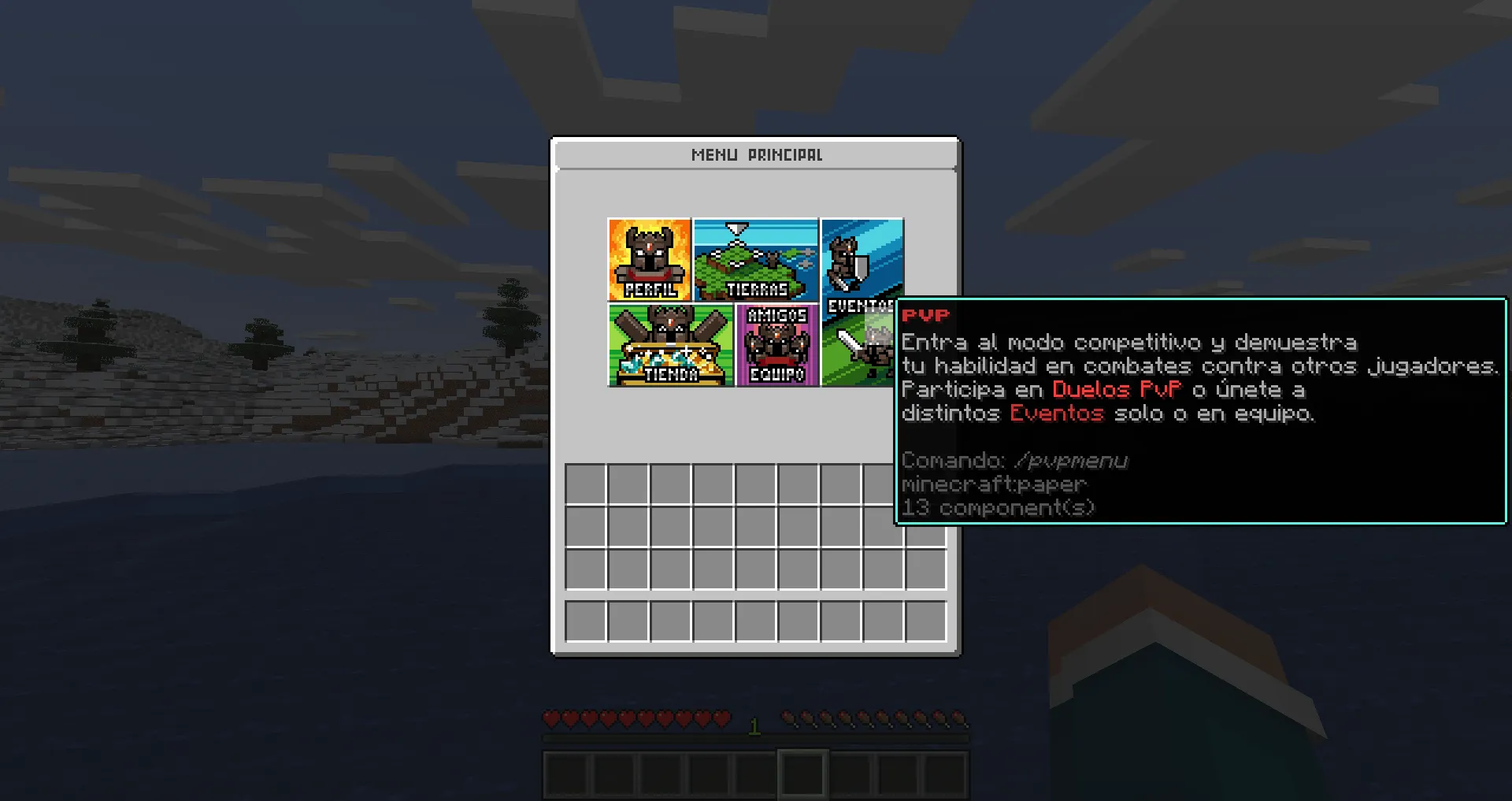 Para acceder al PvP dirígete al Menú Principal con /menu y selecciona la categoría PvP.